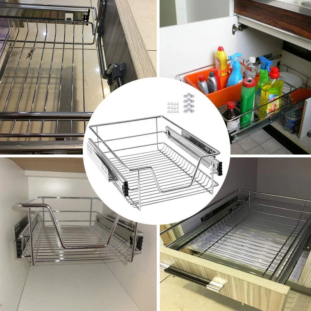 2pz Cassetto Telescopico Cucina 60cm Cestello Acciaio Estraibile Organizer Salvaspazio
