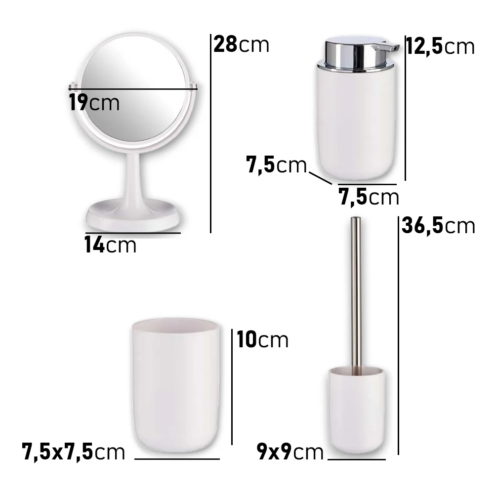 - SET ACCESSORI DA BAGNO: il kit comprende un pratico specchio per il trucco (19 x 14 x H. 28 cm), un porta scopino (9 x 9 x H. 36.5 cm),