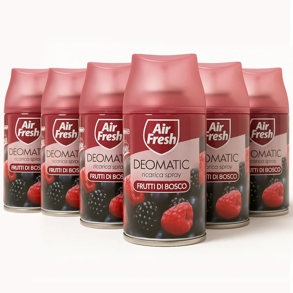 Air Fresh Deomatic Ricariche Profumatore Ambiente 6x250ml Spray Fiori di Bosco Antiodore