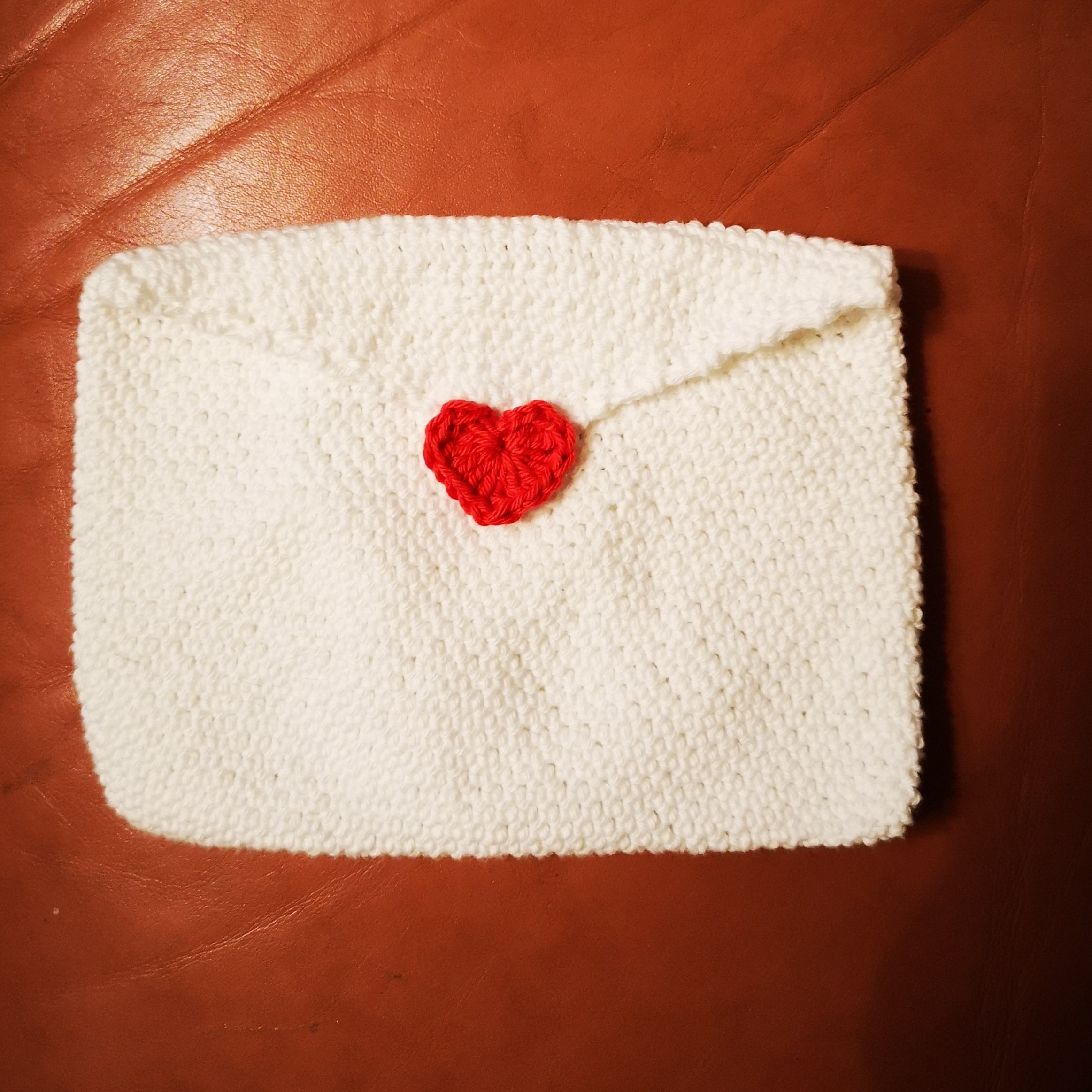 Busta regalo lavorata interamente all’uncinetto.