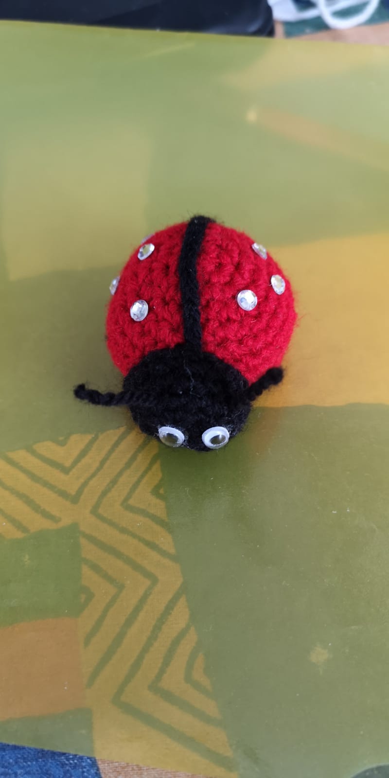Coccinella interamente fatta a mano all’uncinetto.