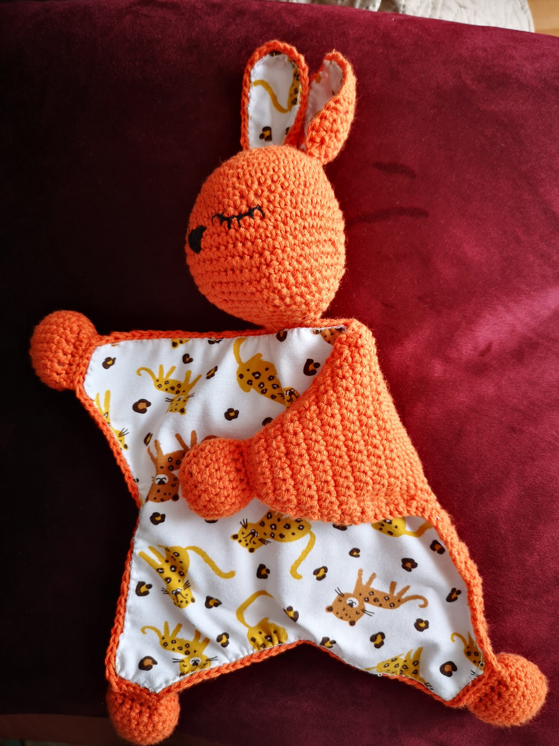 Doudou amigurumi lavorato interamente all’uncinetto.
