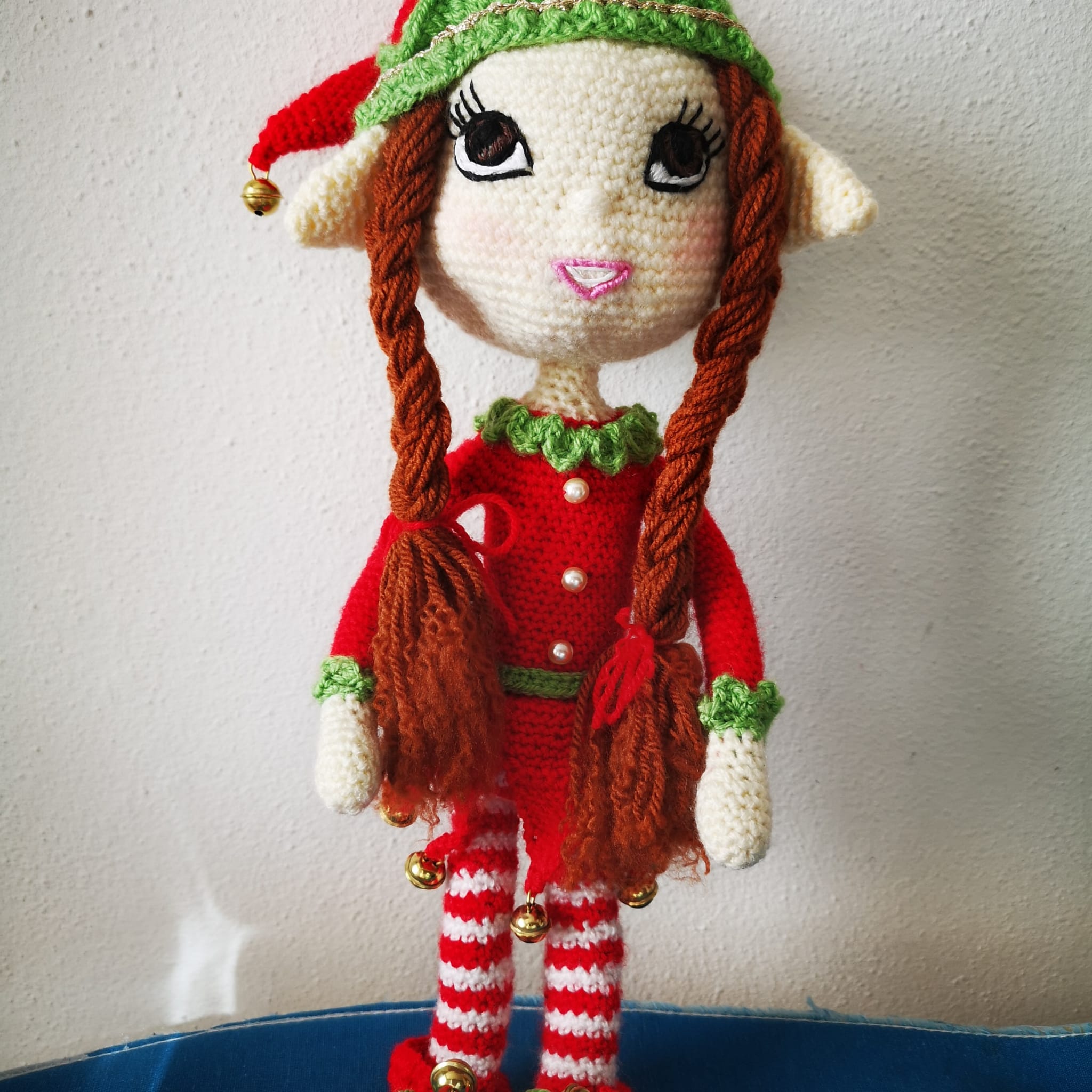 Elfa lavorata interamente a mano all’uncinetto.