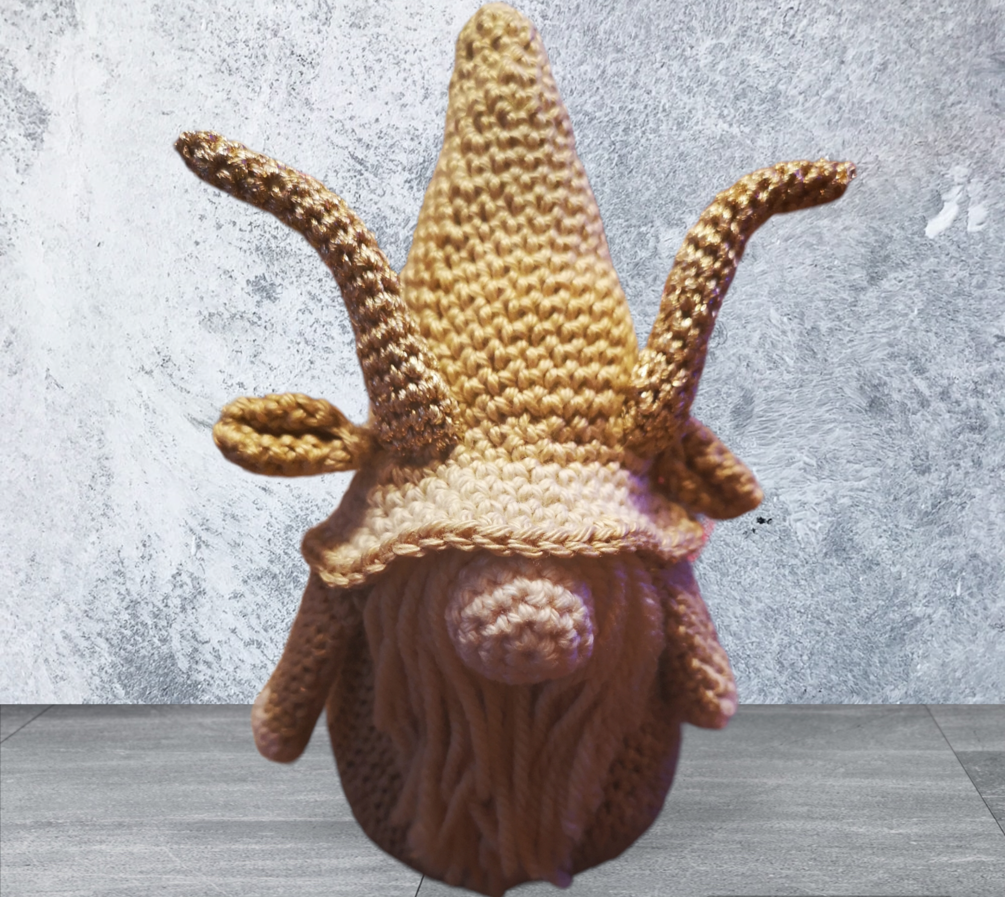 Gnomo oroscopo ‘capricorno’ lavorato a mano all’uncinetto.