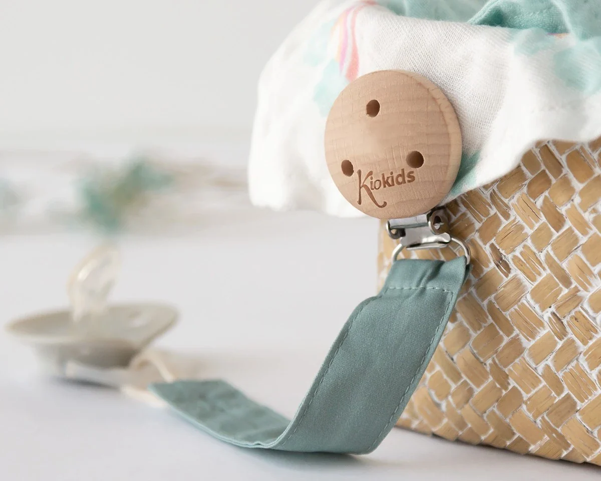 Per accompagnare i nostri succhietti della collezione, vi proponiamo questi porta succhietti . Si fissano all’indumento con una pinza in acciaio inox e legno di faggio, e al succhietto con un nastro in cotone con una corda, quindi si adattano a qualsiasi succhietto ad anello.