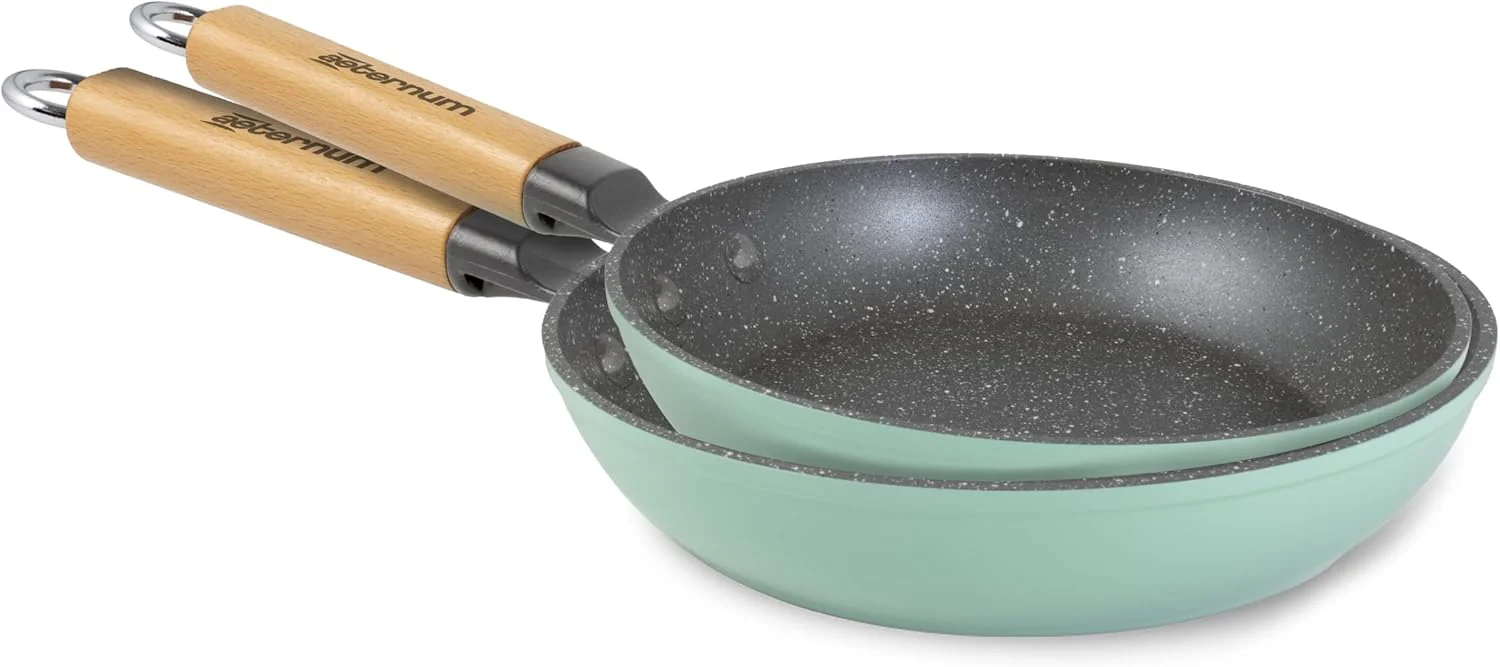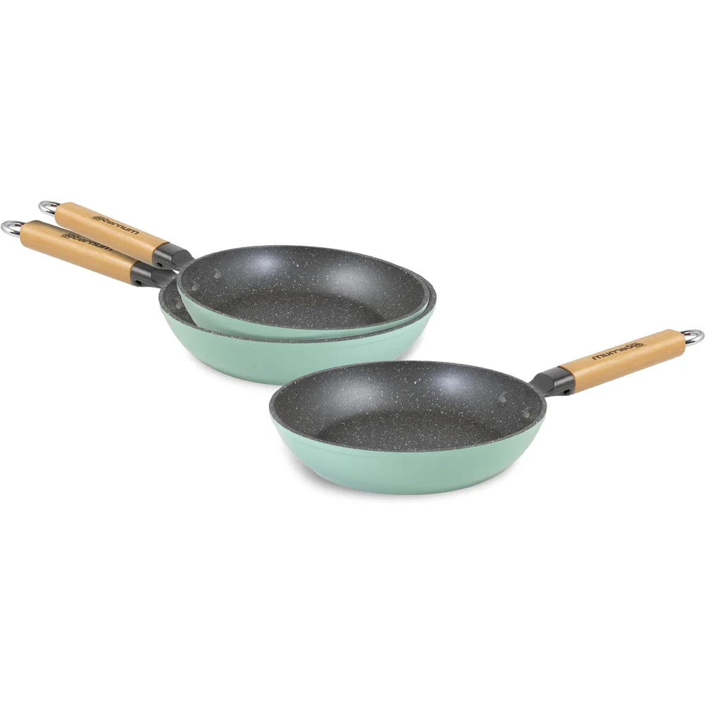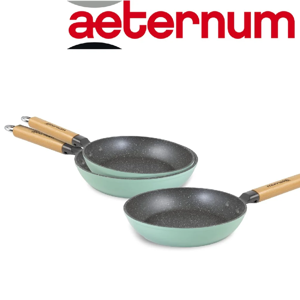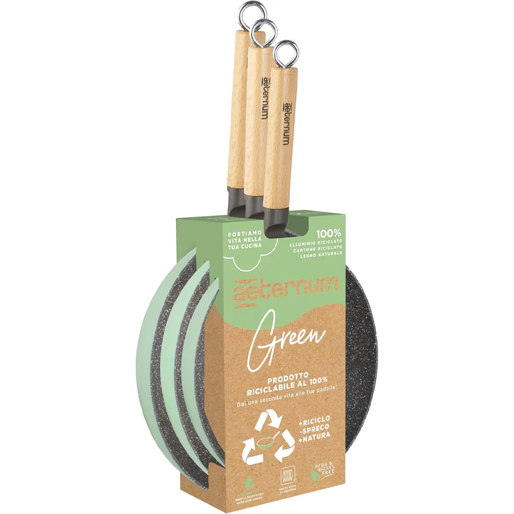 Kit di 3 Padelle Antiaderenti Aeternum Green Diametro 20-24-28 cm con manico il Legno di faggio