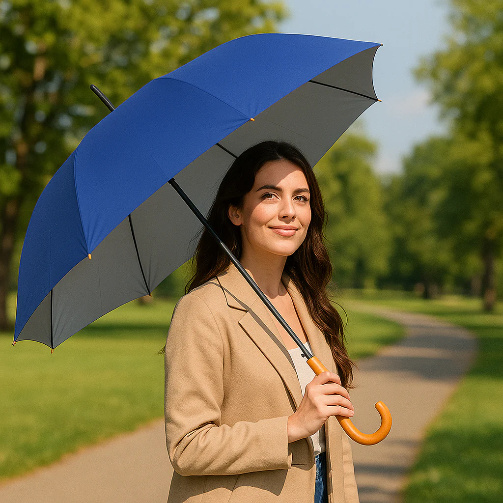 completamente in ogni stagione. Il manico curvo effetto legno garantisce una presa salda ed elegante. - PROTEZIONE COMPLETA IN OGNI CONDIZIONE: Il tessuto duplex protegge efficacemente da pioggia intensa e dai raggi solari,