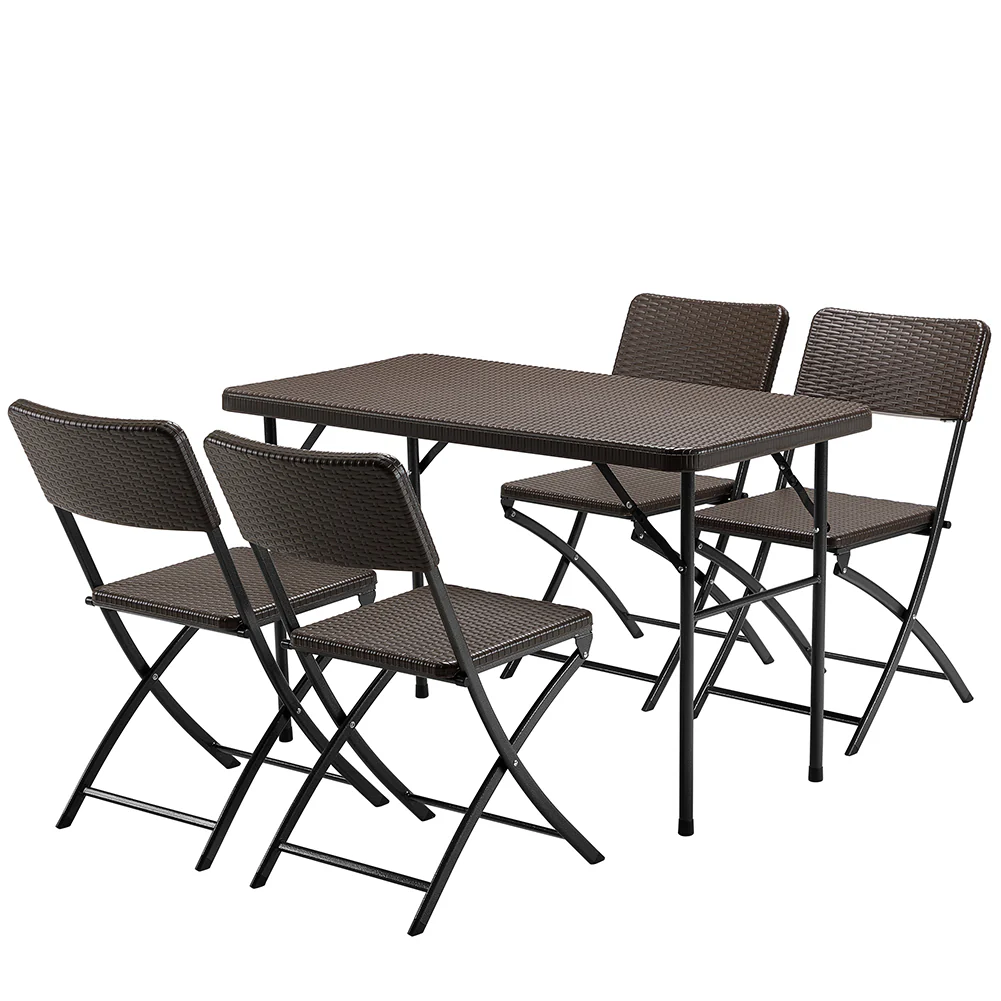 Kit da Giardino Pieghevole in Polyrattan Tavolo e 4 Sedie Interno Esterno Marrone