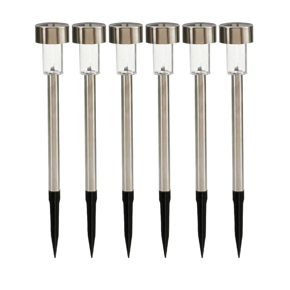 Lampada Solare Giardino 6pz Acciaio H 36cm Impermeabile Ricaricabile