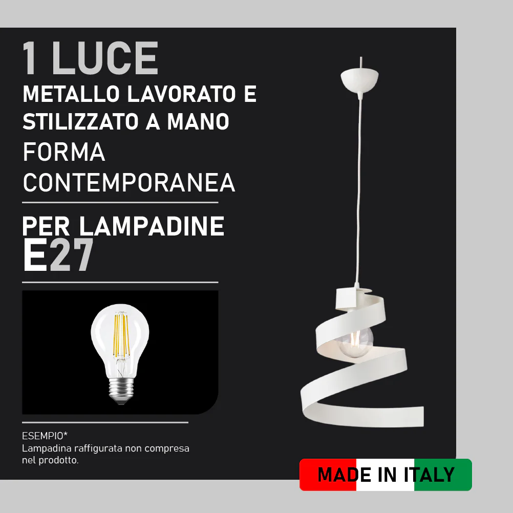 - Il colore bianco aggiunge un tocco di eleganza. Inoltre l’attacco E27 da 57 W garantisce una potenza e una luminosità efficace.