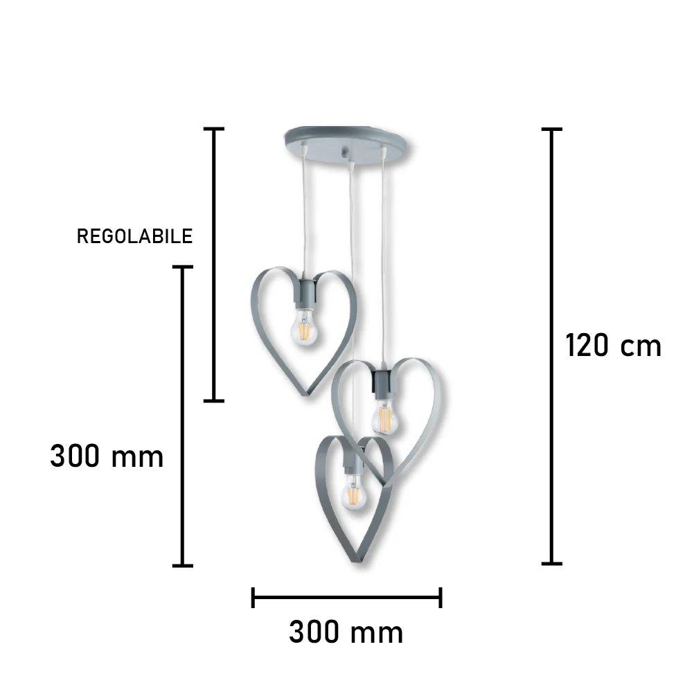 Lampadario Sospensione Metallo Stilizzato a Mano 3Luci E27 regolabile Grigio