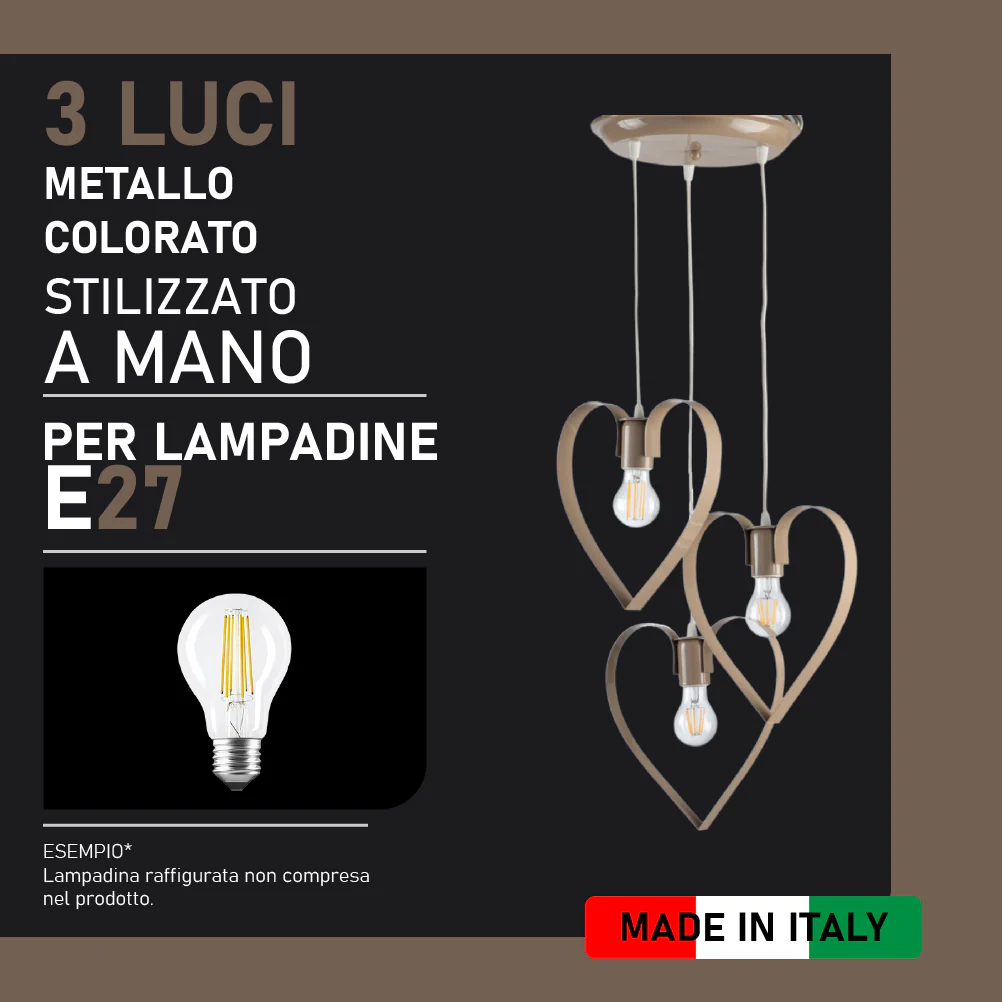 - Scegli il lampadario a 3 luci per un’illuminazione che va oltre il semplice scopo pratico, trasformando ogni ambiente in uno spazio elegante e raffinato.