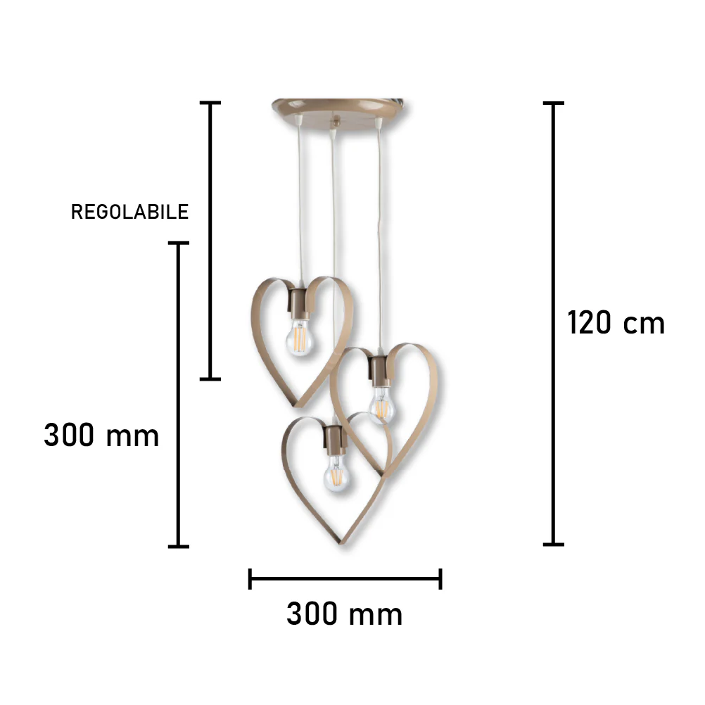 Lampadario Sospensione Metallo Stilizzato a Mano 3Luci E27 regolabile Tortora