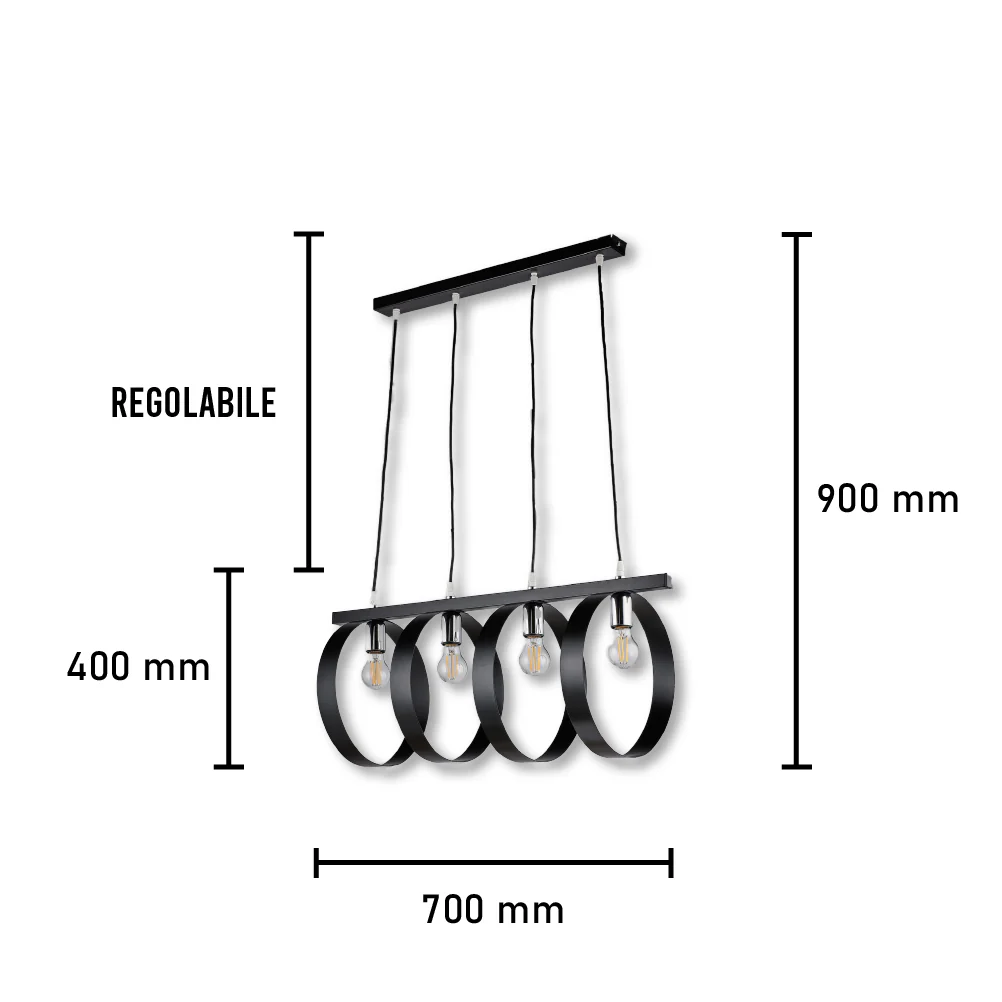 4 Luci, E27 57 W, (altezzaregolabile) Colore Nero/Cromo