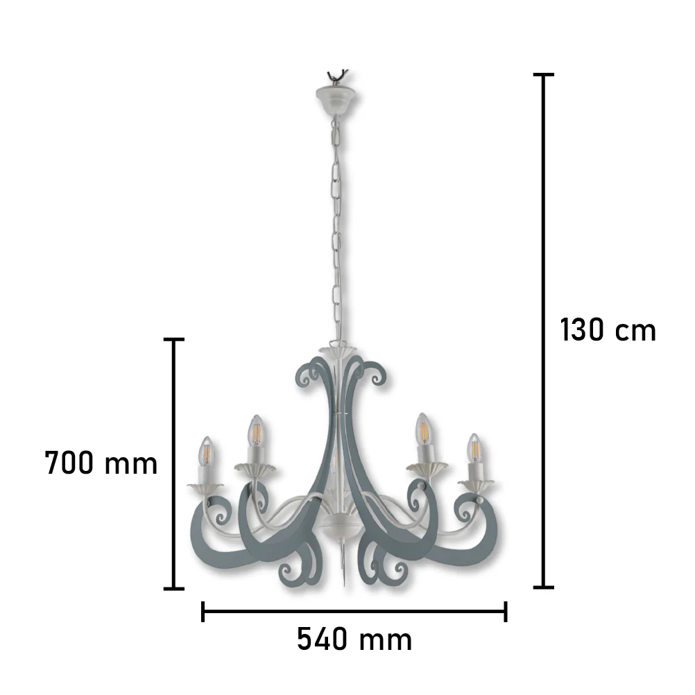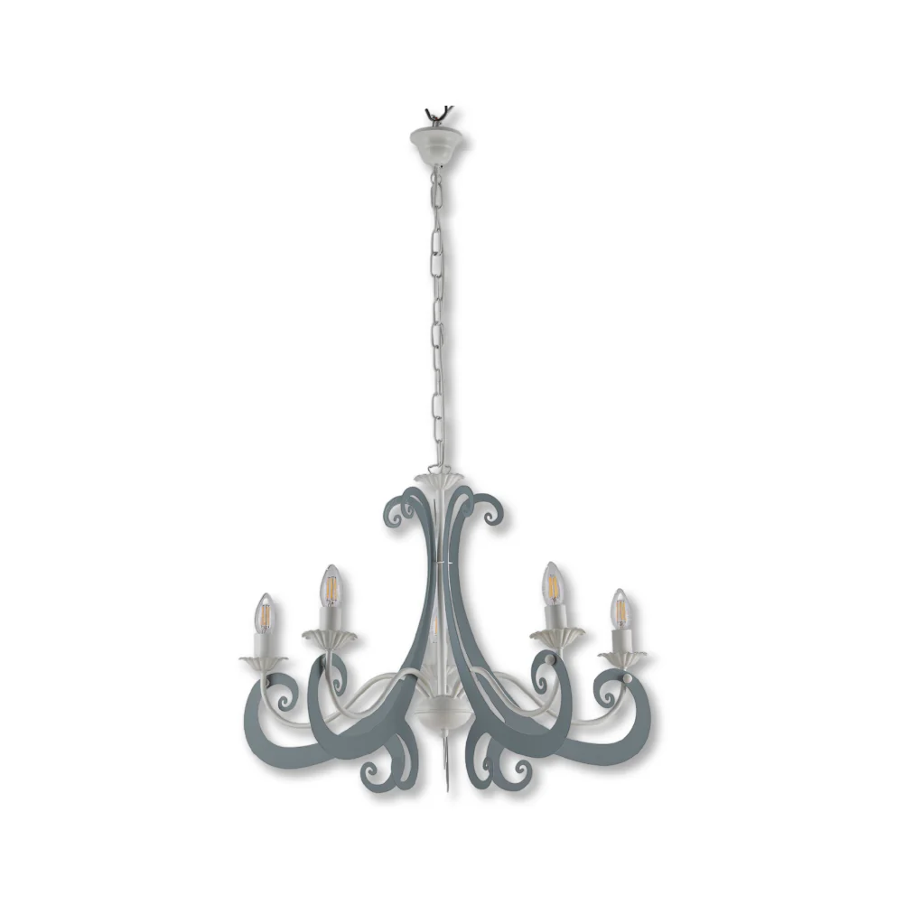 Lampadario Sospensione Metallo Verniciato Camilla 5 luci E14 Bianco/Grigio