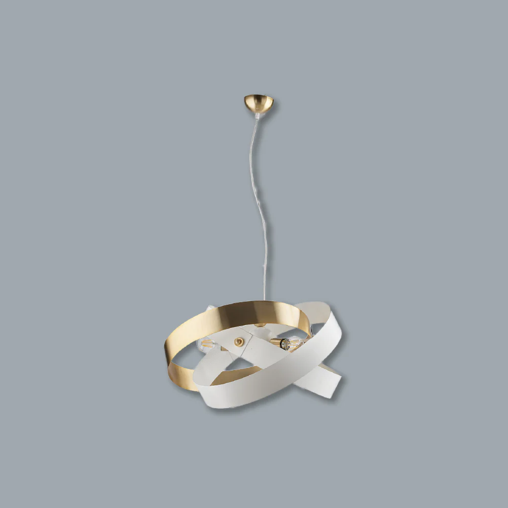Lampadario a Sospensione in Metallo Forma Circolare con Rifiniture in Oro Satinato,