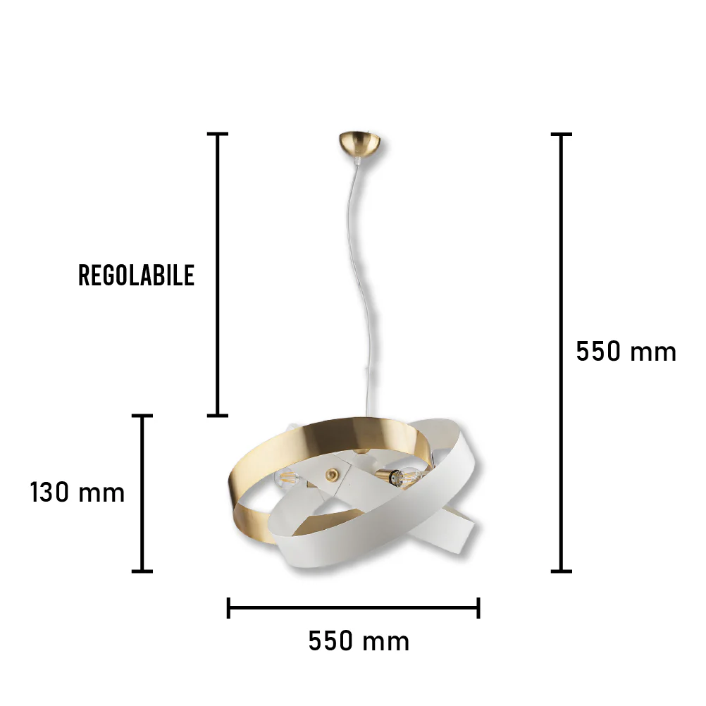 Lampadario Sospensione Metallo Verniciato Elvis 3 Luci E27 Bianco/Oro Moderno