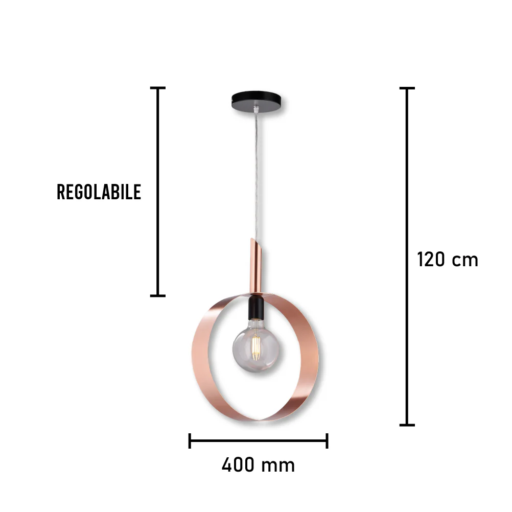 Lampadario Sospensione Metallo Verniciato Stefy 1 luce E27 Rame/Satinato