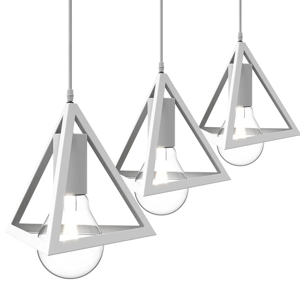 Lampadario Sospensione Piramide 18cm Metallo E27 Design Moderno Bianco