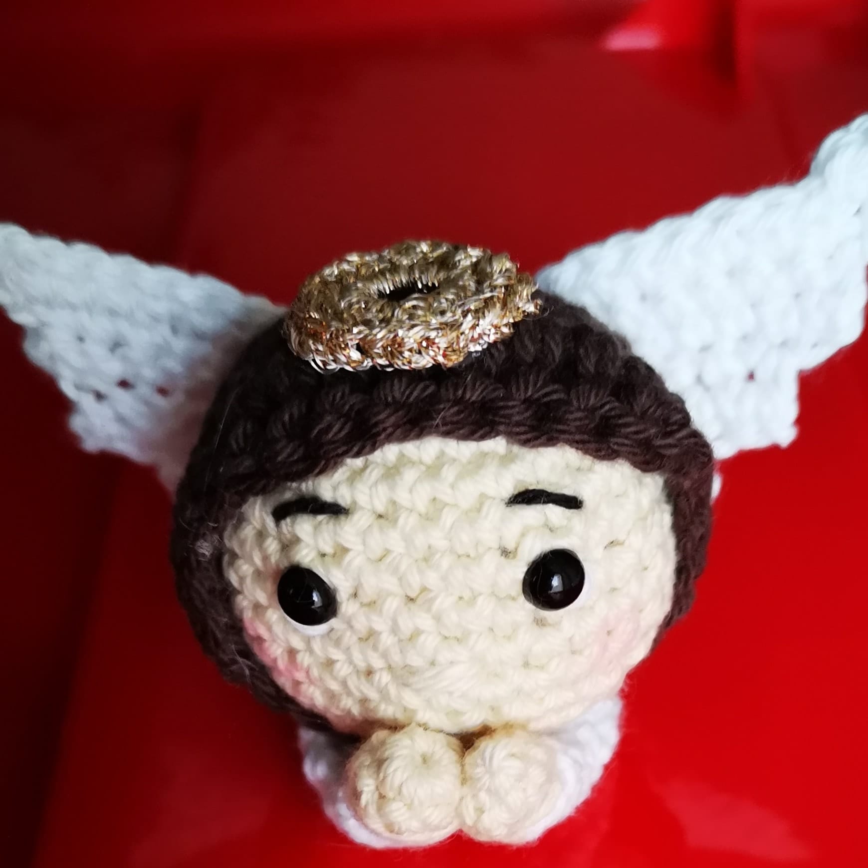 Mini angioletto lavorato all’uncinetto ‘amigurumi’.
