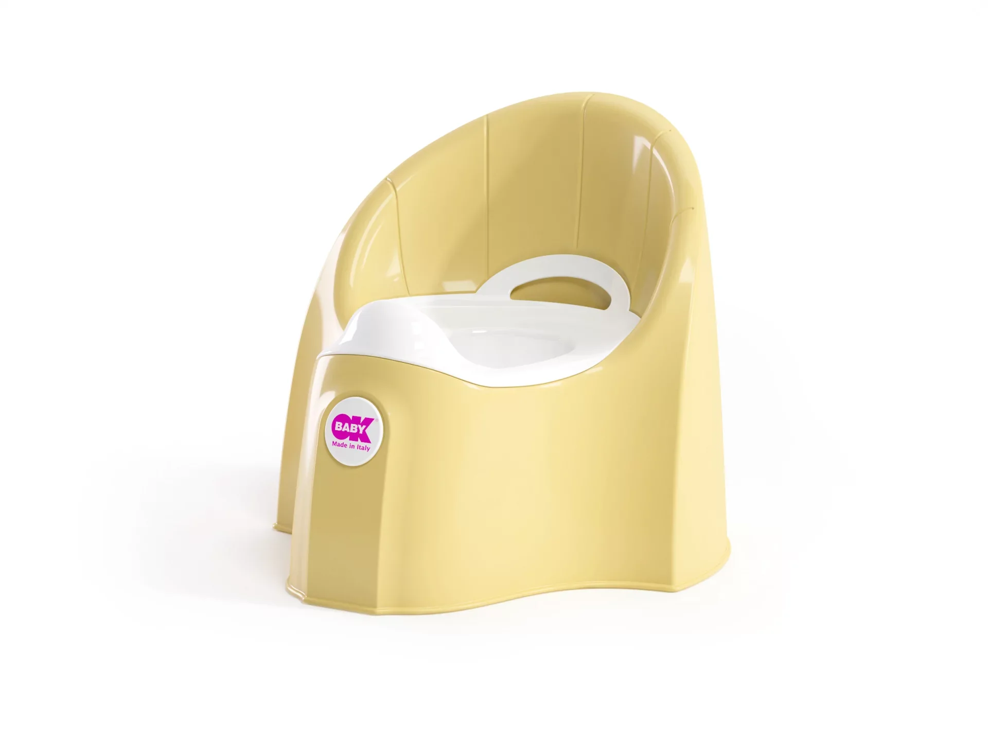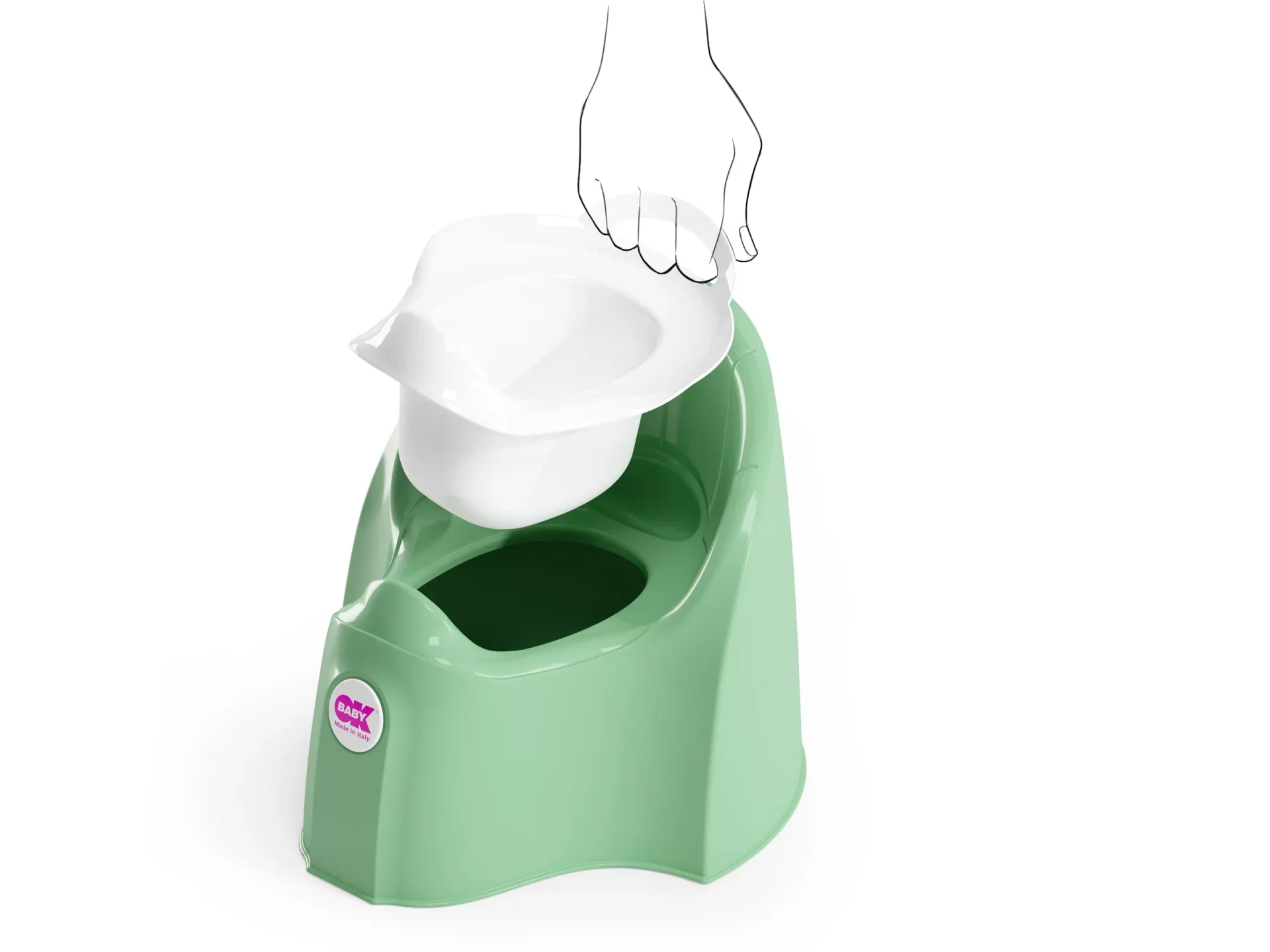 Seduta anatomica;Schienale rialzato per il massimo del comfort;Per una facile e veloce pulizia il vasino รจ dotato di un capiente contenitore estraibile;Parte frontale rialzata per ridurre al minimo gli schizzi dei maschietti.