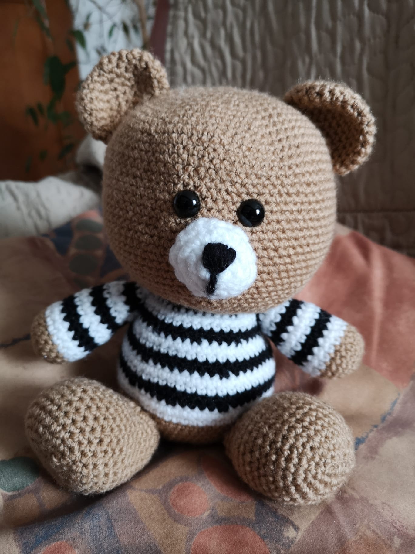 Orsetto seduto Amigurumi lavorato interamente a mano all’uncinetto, possibilità di averlo anche su richiesta in altri colori.