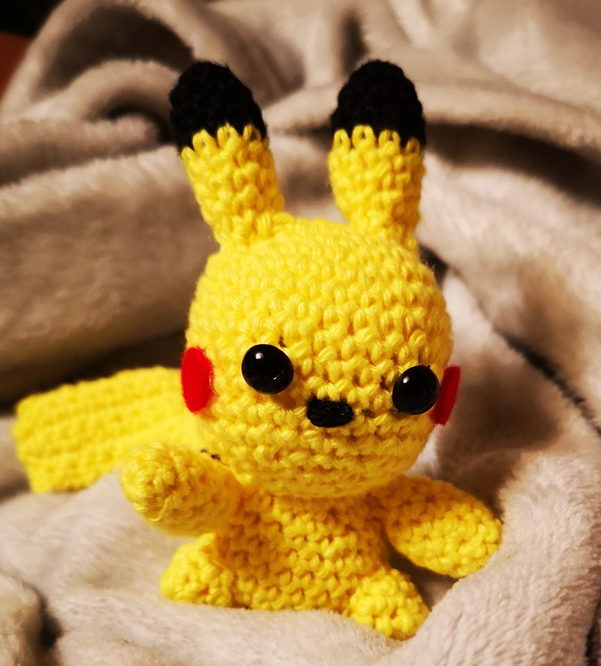 Pokémon Pikachu Lavorato all’uncinetto. Materiale :100 % cotone, ovatta per imbottitura, occhi di plastica con sicurezza. Dimensione : 9 cm