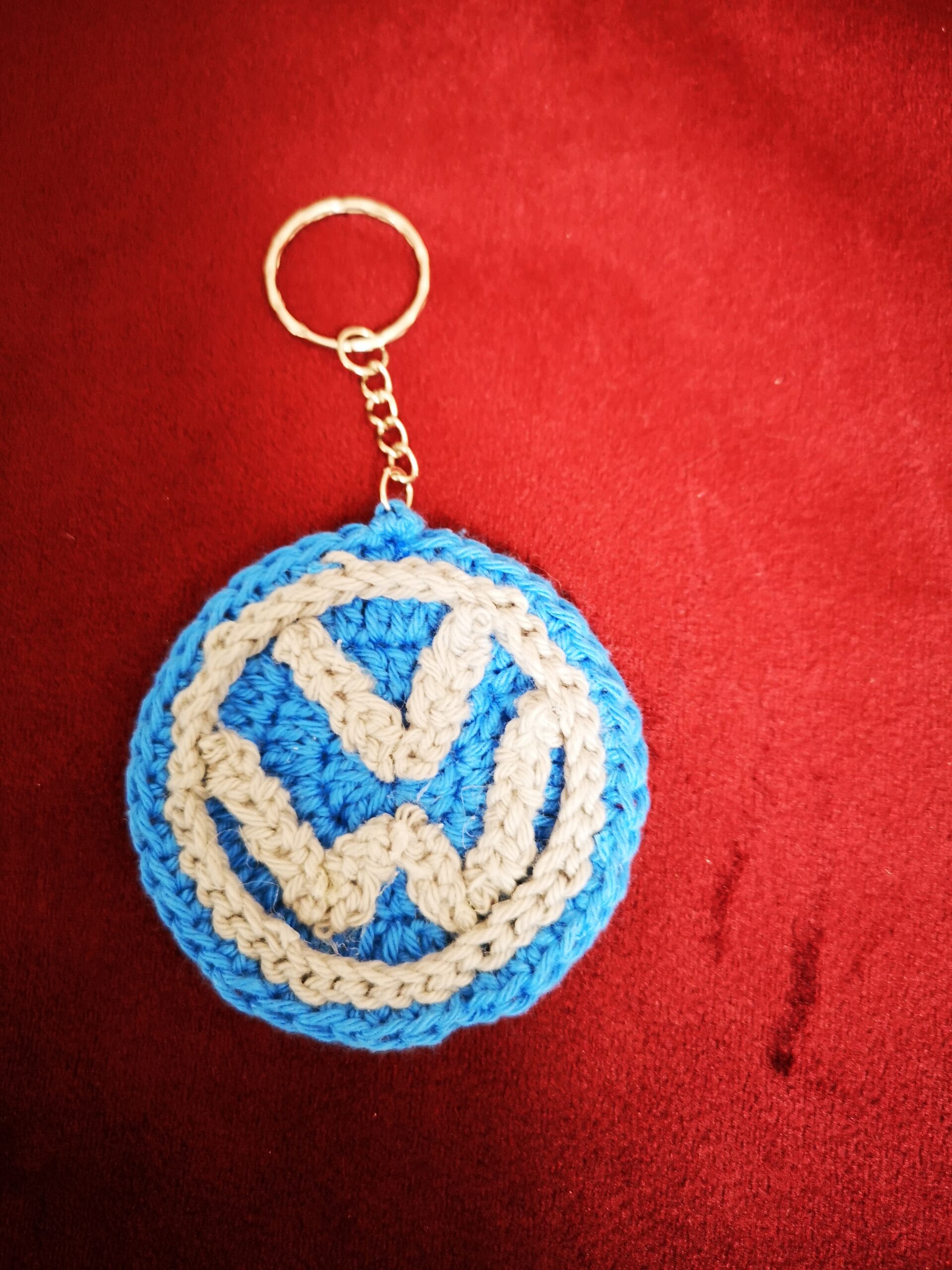 Portachiavi VW realizzato interamente a mano all’uncinetto.