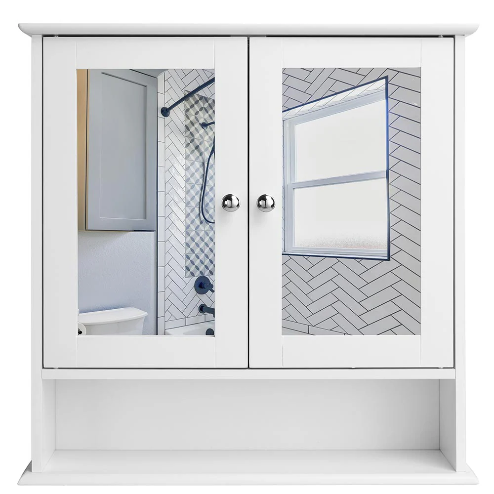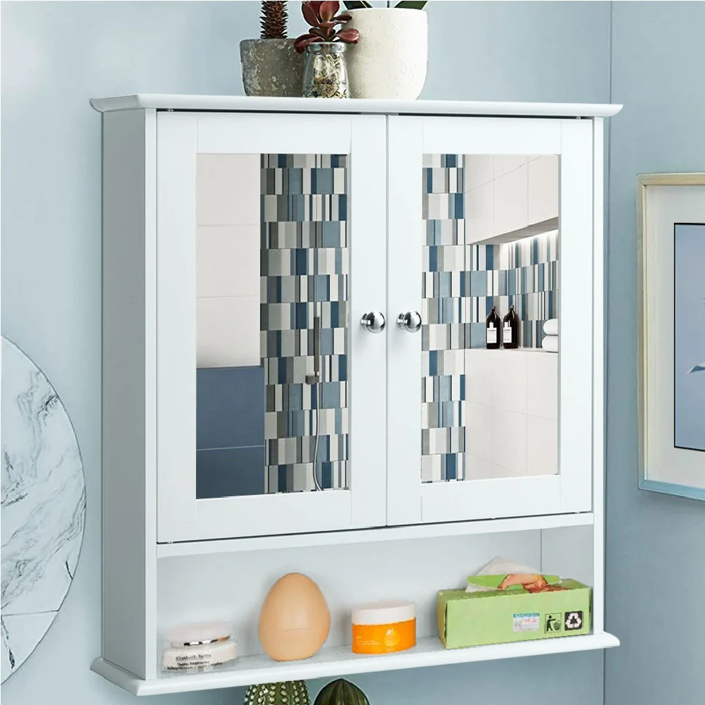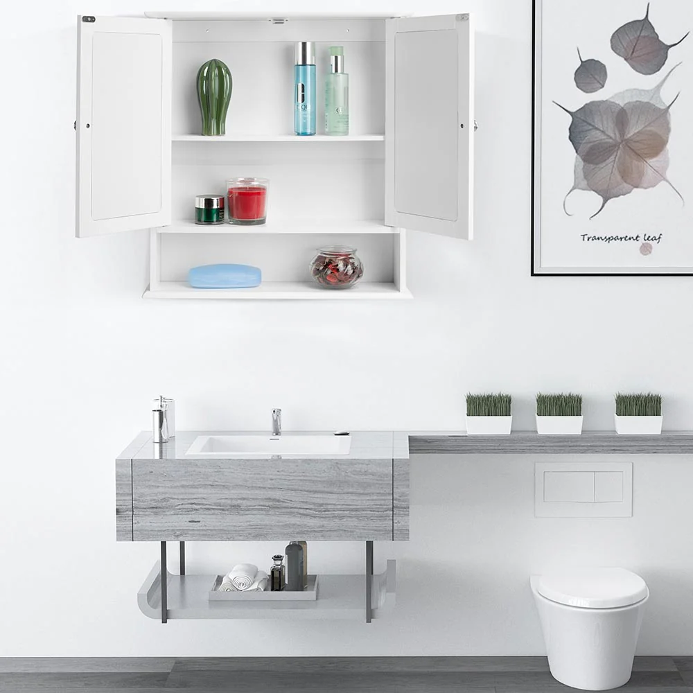 Specchio da Bagno 2ante 3 ripiani Bianco Mobiletto Specchiera Pensile 56x13x58cm