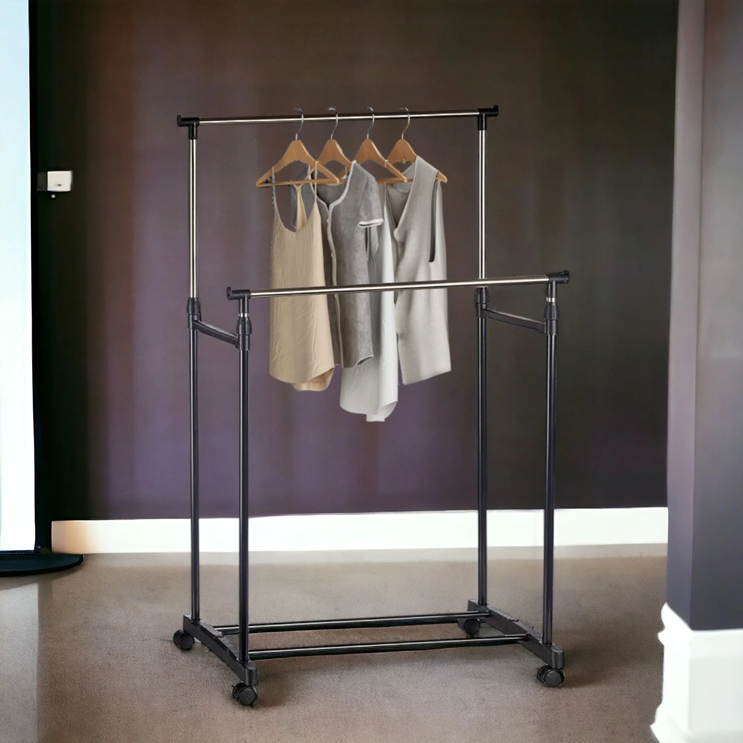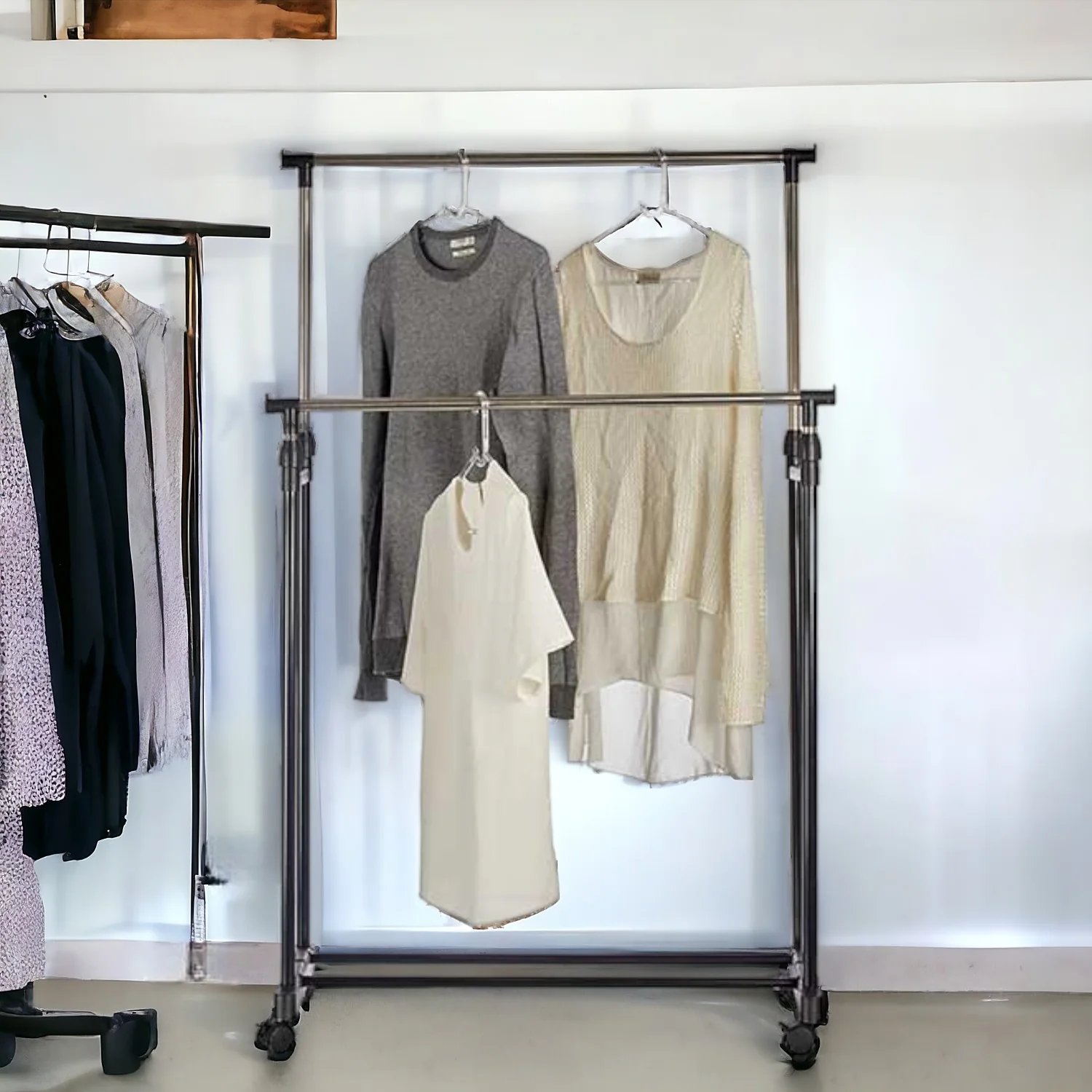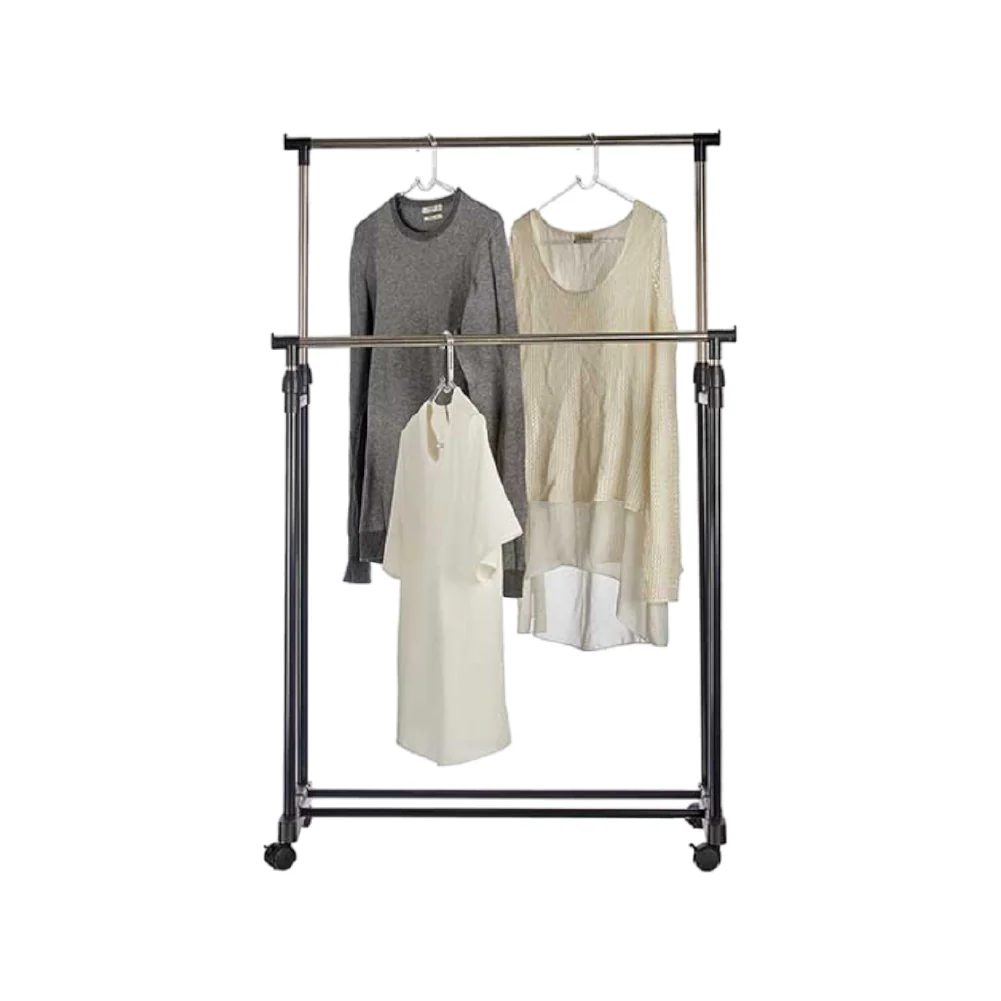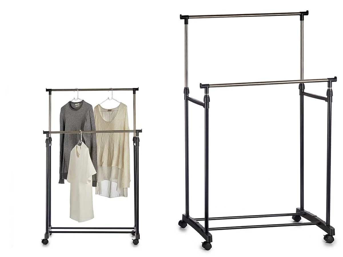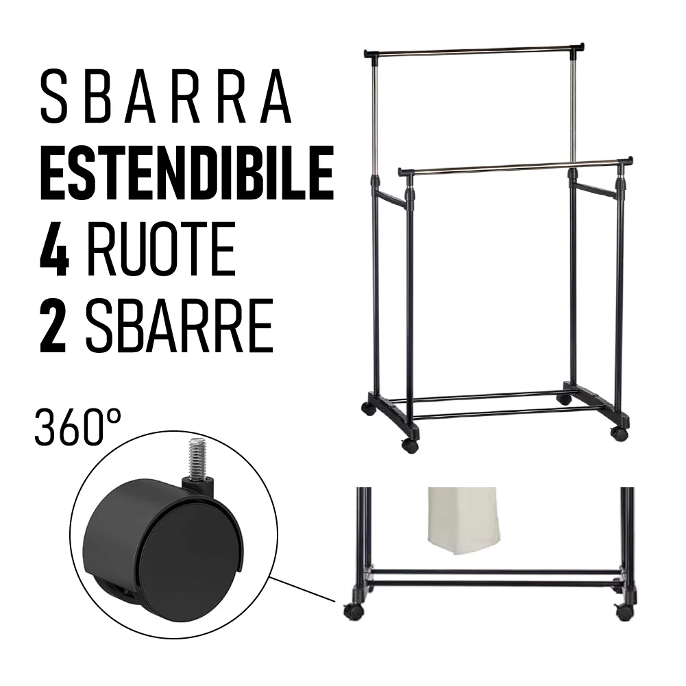Stand Appendiabiti 2Barre Estendibili Attaccapanni doppio con 4Ruote Salvaspazio
