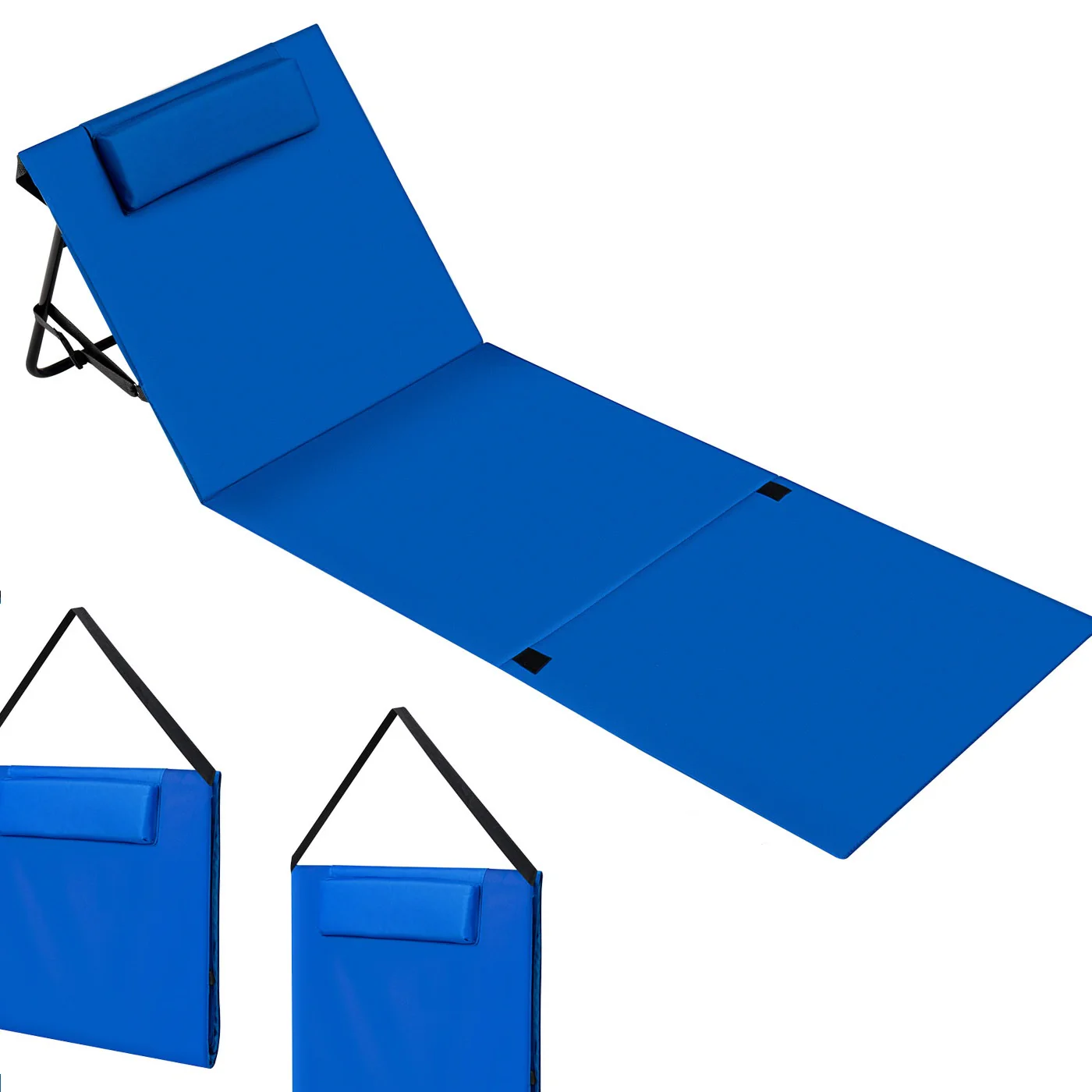 Stuoia Lettino Spiaggia 2pz Spiaggina Mare Prendi Sole Pieghevole Poggiatesta Blu