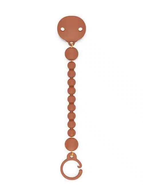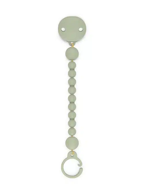 Comoda clip per agganciare il succhietto, realizzata con un design unico, da un singolo pezzo di silicone morbido e flessibile per fornire sicurezza e igiene.
