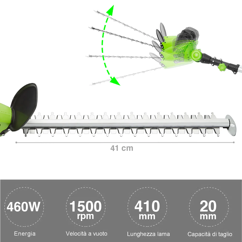 Tagliasiepi Telescopico Elettrico 460W Estensibile Sega Tagliabordi Tosasiepi