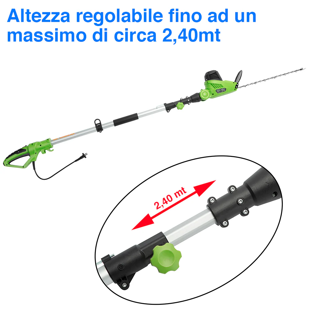 - TAGLIASIEPI TELESCOPICO ESTENSIBILE FINO A 2,4MT: Dotato di asta regolabile e lama in acciaio 41 cm, raggiunge anche le siepi più alte con precisione.