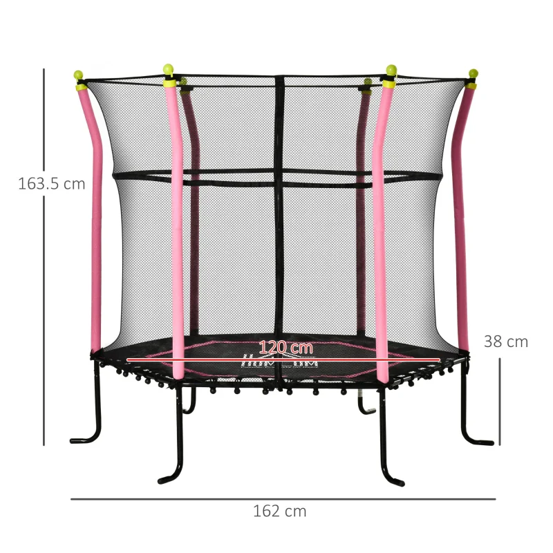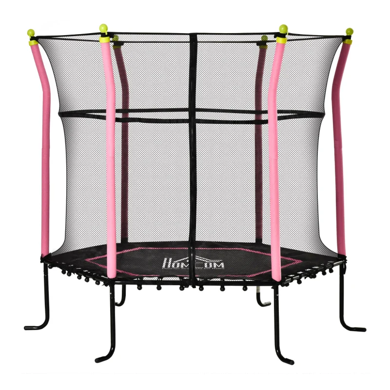 Tappeto Elastico Bambini 3-10 Anni con Rete di Sicurezza e Corde. Φ160×163.5Acm Rosa e Nero