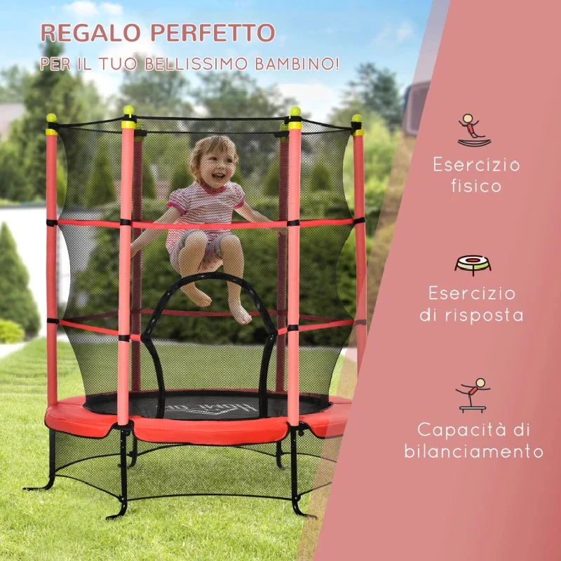 Tappeto Elastico Bambini con Rete di Sicurezza e Pali Imbottiti 163 H 163cm Rosso