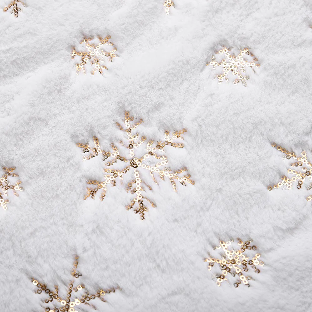 - DIMENSIONI OTTIMALI 80 CM: Gonna copri base albero di Natale in peluche bianco e oro, morbida e soffice,