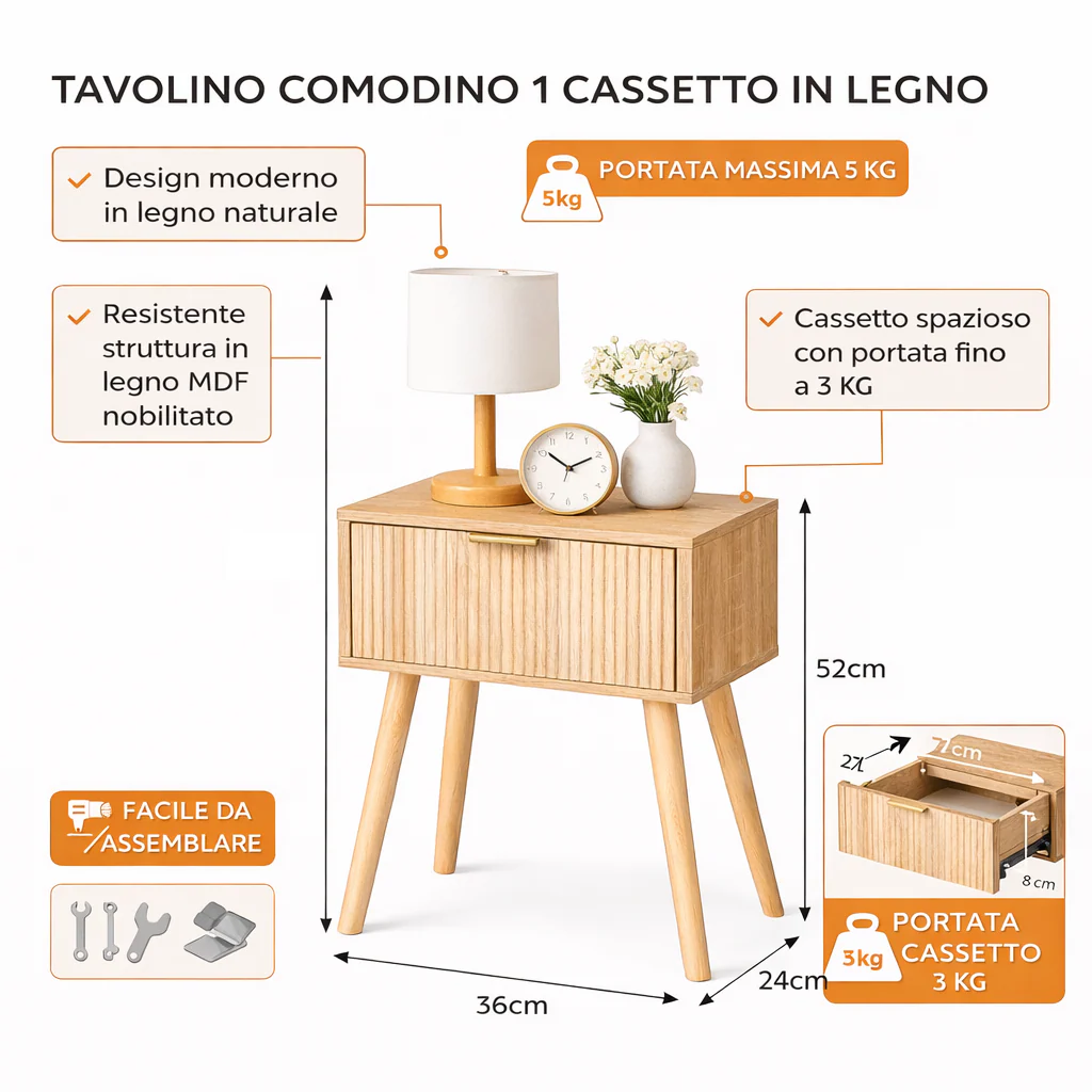 un comodino che semplifica la tua giornata e valorizza ogni ambiente con il suo colore naturale. - QUALITÀ E STILE CHE SI DISTINGUONO: Rispetto ai tavolini simili, offre un design moderno, materiali solidi e dimensioni salvaspazio