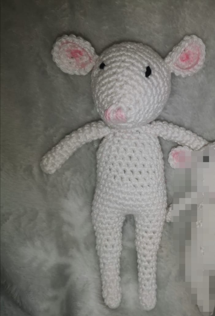 Topolino amigurumi lavorato interamente all’uncinetto . Materiale: 100% cotone fiocco Dimensioni:Â 15 cm circa